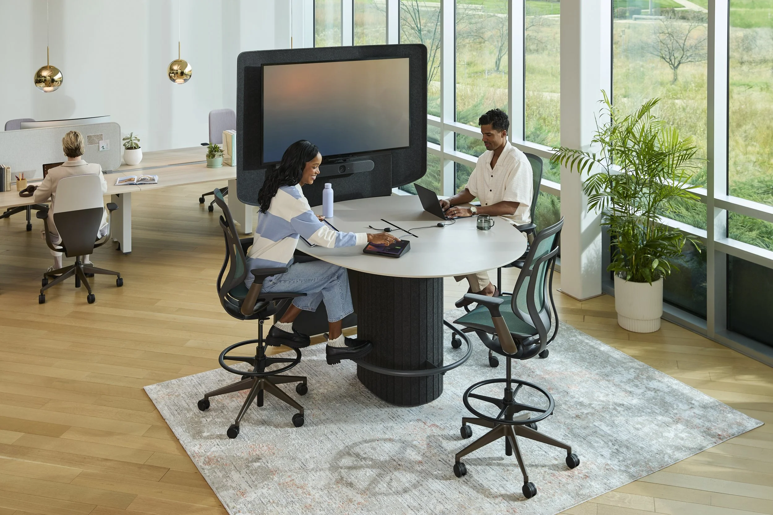 I participated in the design exploration for extensions to the Ocular™ product family while at Steelcase. The Ocular™ Tower line is optimized for hybrid conferencing prioritizing people-people, people-camera, & people-display sightlines in a smaller huddle sized application.